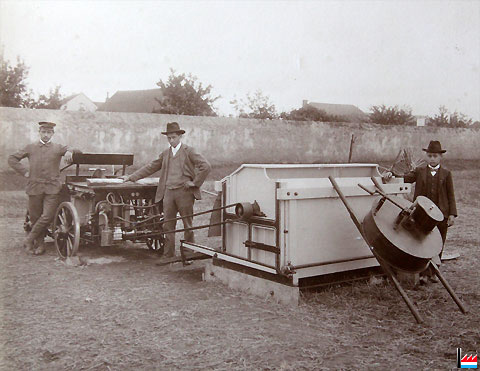 Erster Luxemburger Traktor (System Krack Welsdorf) beim Mähen in den Parkanlagen von Schloß Berg - 1912 (Photo: Christoph Krantz, Ettelbrück)