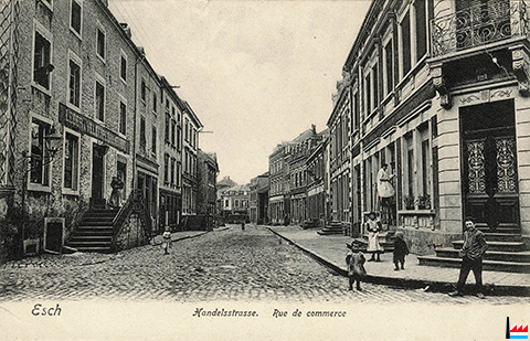 Esch/Alzette, Handelsstrasse - rue du Commerce - vers 1906 (Carte postale: Verlag: Kremer-Müller, Esch; Collection: industrie.lu)