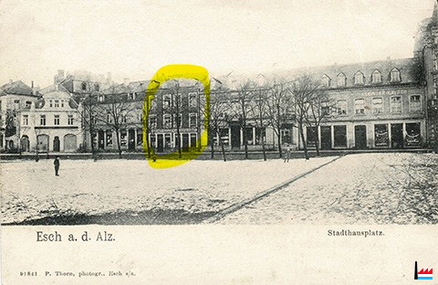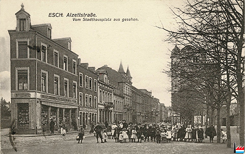 | 1905 | Das bisher durch die Geschwister Kayser besetzte Geschäftshaus, Ecke Alzette und Gartenstraße, das dem Hrn. Kremer-Müller zugegehört, wird momentan neurestauriert und in ein erstklassisches Geschäftshaus umgewandelt. Der restaurierte und vergrößerte Prachtbau trägt sehr viel zur Verschönerung des Stadthausplatzes bei. (LW: 30.3.1905) |