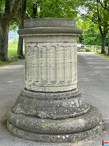 Architecte-paysagiste: Luja Henri Hauteur totale: 13,60 m Socle orné sur 4 faces d'écussons en bronze forgé: dynastie Luxembourg-Bourbon-Nassau, Luxembourg, Mersch. Prix: 120.000 fr (= 3.000 €) Entrepreneur: ? Ferronnerie d'art (couronne, 4 écussons, 4 rubans avec feuilles de chêne, 1 plaque en bronze avec texte de Nicolas Welter): Haagen Michel