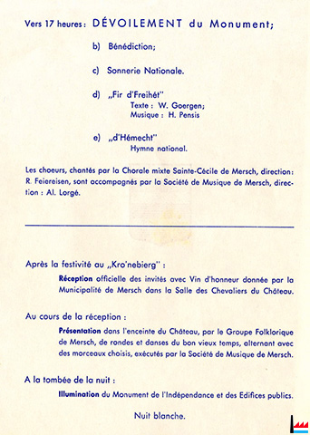 ![]() Inauguration du Monument National de l'Indépendance, à Mersch (LW: 3.6.1959; Scan: Nico Lucas) |