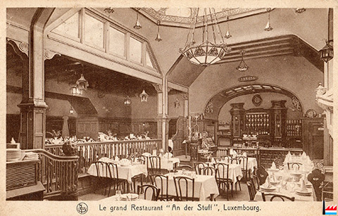 LUXEMBOURG-VILLE - GRAND RESTAURANT "AN DER STUFF" - vers 1927 (Carte postale: Bern. Kutter, Luxembourg; collection: industrie.lu)