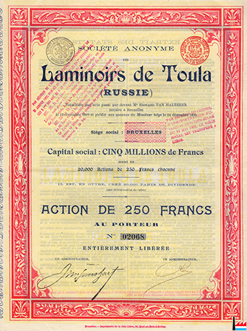 Société anonyme des Laminoirs de Toula - Action de