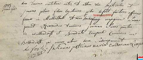 Benedicte / Benedicta Limpach, de Bollendorf (Source: http://data.matricula-online.eu/en/LU/luxemburg/befort/KB-02/?pg=6) |