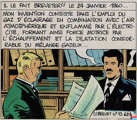 | 24.1.1860 | ![]() Moteur à gaz Lenoir - Brevet N° 43624 (Spirou N° 1657 de 1970; Collection: industrie.lu) |