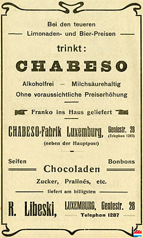 | 26.5.1920 | Limonadenfabrik Chabesco Luxemburg (LW: 26.5.1920) |