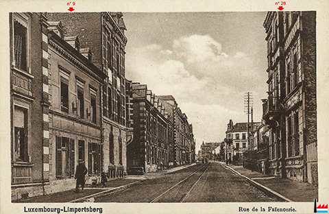 <=1892: Café Feller P., Limpertsberg, avenue de la Faïencerie <=1892, 1907: Schmit J.-P., menuisier, Limpertsberg, rue de la Faïencerie <=1892: Muller J.-P., maréchal-ferrant, Limpertsberg, rue de la Faïencerie |