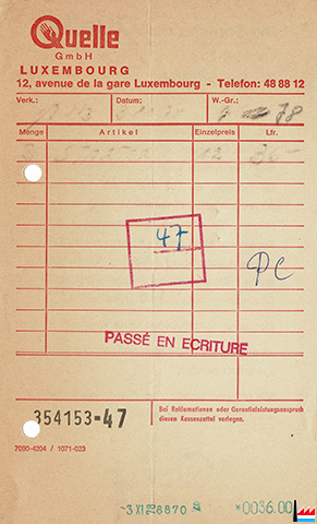 | 17.11.1962 | Ouverture - Eröffnung: Quelle, Luxembourg-Gare, 12 avenue de la Gare |