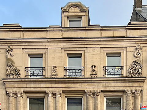 ![]() ![]() LUX - VOX - W.E. (Western Electric) - ET - Détails de la façade de l'ancien Cinéma Capitole, 55 avenue de la Gare, Luxembourg (Chinese Restaurant Royal Garden) (Photos: 14.12.2015 jmo) Inauguration: 1931 - Georges Reckinger, propriétaire Architectes: Jean Mackel - Mathias Martin (1882 - 1943, Architekt, Betreiber der Kinos Parisiana, Luxemburg 1915 - Anfang 1920er Jahre)
