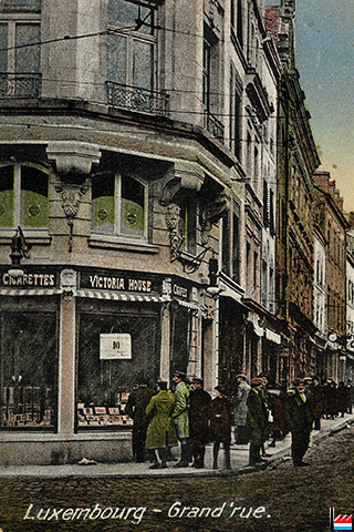 | <=1922 | ![]() A la gauche: Victoria House, Luxembourg, à la droite l'Epicerie J.P. Klein, coin Grand'rue et rue Philippe, Luxembourg - vers 1922 (Carte postale: Th. Wirol, Luxembourg-Gare; Collection: industrie.lu) |