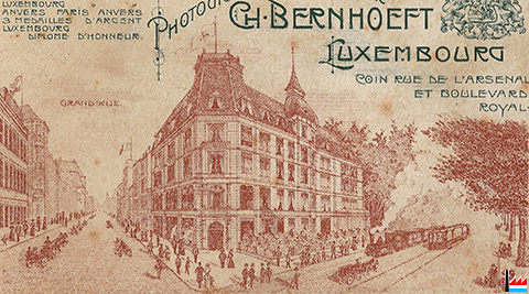 ![]() Maison Bernhoeft, Hofphotograph, Photographie de la Cour, Ch, Bernhoeft. Luxembourg coin rue d l’Arsenal et boulevard Royal. (Collection Aschman-Bodson) |