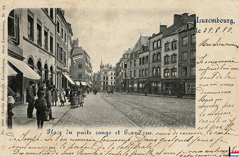| <=1899 | ![]() Mohren Apotheke - Au Drapeau Luxembourgeois, Ch. Knaff, Joseph Klees, Hernandez, Wünsch-Nouveau, Pâtisserie moderne François Bertogne, Chemiserie Léon Mersch, Place du Puits rouge et Grand'rue, Luxembourg - vers 1899 (Carte postale: N° 1093 Charles Bernhoeft, Luxembourg; Serie Luxembourg N° 21; Collection: industrie.lu) |
