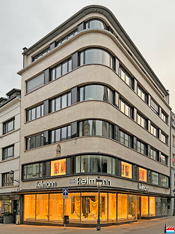 | 25.10.1932 | ![]() Eröffnung des Neubaus Fourrures Jenny (OMZ: 24.10.1932) Luxembourg, Grand-Rue Am 12.2.1932 stand der alte Bau Hertz-Grünstein noch intakt da und am 11.10.1932 konnte das siebenstöckige neue Geschäftshausschon eröffnet werden . Architekt Fritz Nathan, Frankfurt/Main + Architekt Léon Leclerc, Luxemburg |