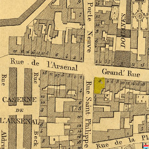 Maison 2 rue Grand'rue, Luxembourg (Plan de la Ville et de la Forteresse de Luxembourg, dressé par J.B. Liesch, vérificateur-chef de bureau du Cadastre - 1862) |