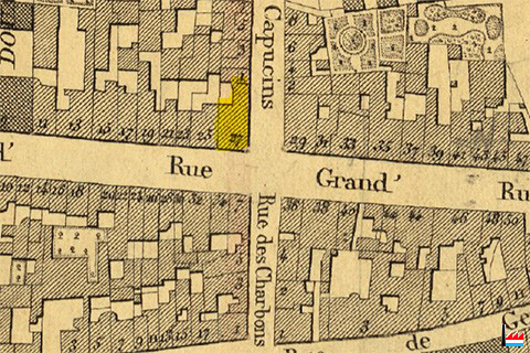 | 1862 | ![]() Eckhaus - Maison coin 27 Grand'Rue (Groussgaass) - rue des Capucins (Plan de la Ville et de la Forteresse de Luxembourg, dressé par J.B. Liesch, vérificateur-chef de bureau du Cadastre - 1862) |