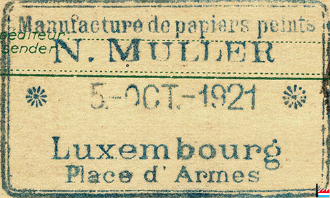 | <=1921 | ![]() Manufacture de papiers peints N. Muller (Camille Schmit), Place d'Armes, Luxembourg - 5.10.1921 (Collection: industrie.lu) |