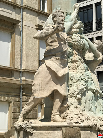 Den Hubert Schmit stung Modell fir de Schmatt um Dicks - Lentz Monument op der Plëss d'Arem, Sculpteur: Pierre Federspiel (Photos: 21.6.2017 jmo)