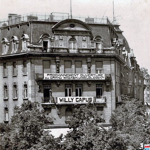 | 9.1948 | ![]() Geschäftsverlegung des bisher am Wilhelmsplatz geführten Geschäftes in Teppichen, Läuferstoffen, Linoleum, Balatum, Kinderwagen, Kinderbetten, Dekorations-Stoffen, Rideaux, Spielwaren, Bettwaren usw., nach unserm neuen Geschäftslokal, unter dem Namen Grands Magasins d'Ameublement Willy Capus, nach 38 avenue de la Liberté (Haus Devas) (t: 25.9.1948) |