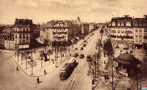 | 5.6.1917 | ![]() Nicolas Bradtké s'installe vers 1910 dans le quartier de la Gare, à la Place de Paris, au coin de la Rue Zithe et de la Rue d'Anvers. Comme on peut lire sur une affiche de l'époque, il a complété ses activités de vitrier et de miroitier par un service d'encadrement. |