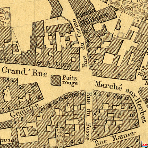 Carte 1862: Puits Rouge, Luxembourg (Plan de la Ville et de la Forteresse de Luxembourg, dressé par J.B. Liesch, vérificateur-chef de bureau du Cadastre - 1862) |