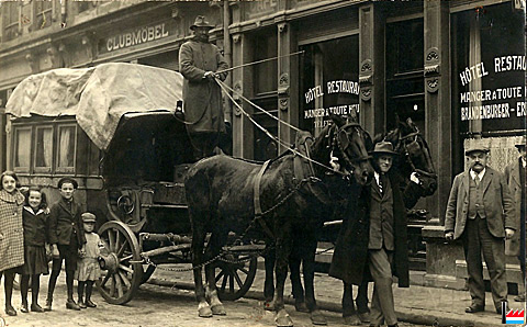 Tëscht de Päerd steet mäi Grousspapp, den Henri Clement. Ech kann Iech daat net sécher confirméieren well mäi Grousspapp hätt deemools 16 Joër gehaat. Vun enger aanerer Quell heescht et, et wier méngem Grousspapp säi Brudder, de Josy Clement (1905-1927). Deen hätt zum Zäitpunkt vun dëser Photo 19 Joër gehaat wat, mengem Gefill no, vläicht éischter géif stëmmen. (Info: Jean Clement, gérant-associé vu Voyages Josy Clement)