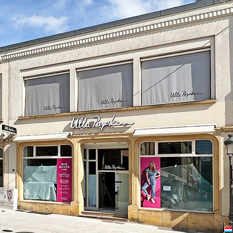 Geschäftshauses Grands Magasins J. Rosenstiel - Schwarz Philippstraße 4-6 rue Philippe, Luxembourg (früher Lyon Söhne, 4-6 Philippstraße, Luxemburg; 1935: Rosenstiel Jos., ass. de la Maison Lyon fils & Cie, 6 rue Philippe, tél: 3508) durch Félix Rosenstiel |