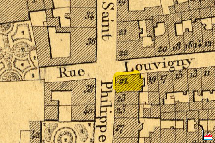 | 1862 | ![]() Luxembourg, 21 rue Louvigny (Plan de la Ville et de la Forteresse de Luxembourg, dressé par J.B. Liesch, vérificateur-chef de bureau du Cadastre - 1862) |