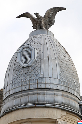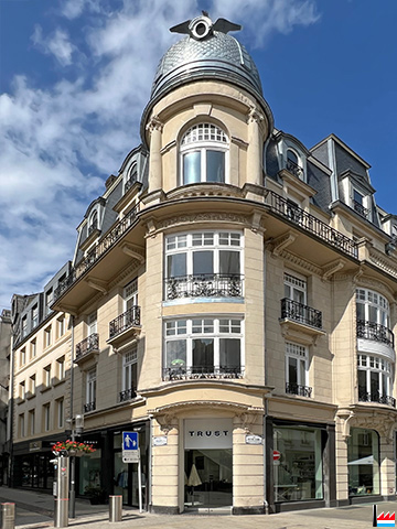 | 1907 | ![]() American Building - Ernest Derulle - ED 1907 - coin rue Notre-Dame / rue Philippe II, Luxembourg (Photos: 12.8.2013 jmo) 1907: Construction de l'"American Building" avec aigle pour Ernest Derulle, coin rue Notre-Dame / rue Philippe II, Luxembourg - ED 1907 - par Giorgetti Allgemeines Reisebureau, Amerikanisches Wechselgeschäft, Bank and Passage Office, Exchange |