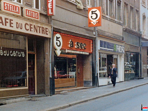 ![]() Luxembourg - rue Philippe II: Café du Centre, N°16 - 5 à sec, N° 14 - Phildar, N° 12 - Boucherie Schmitz, N° 10 - été 1976 (Photo: Dr Alex Aschman) |