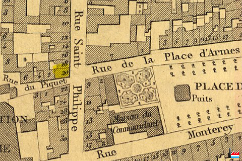 | 1862 | ![]() Maison 20 rue Saint-Philippe, Luxembourg (Plan de la Ville et de la Forteresse de Luxembourg, dressé par J.B. Liesch, vérificateur-chef de bureau du Cadastre - 1862) |