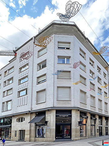 | 4.1906 | Bautenveränderungen. Dieser Tage hat man mit dem Abbruch des "Hotel de la Poste", Ecke der Philipp- und Geniestraße begonnen, um einem Neubau Platz zu machen. (BBZ: 26.4.1906) |