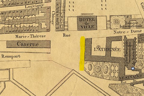 ![]() Luxembourg - rue longeant l’Athénée (Plan de la Ville et de la Forteresse de Luxembourg, dressé par J.B. Liesch, vérificateur-chef de bureau du Cadastre - 1862) |