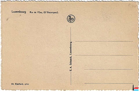 Luxembourg – Rue de l’Eau (D’Waszergasz), Ad. Eberhard. (Carte postale: NELS – E. A. Schaack, Luxembourg; Collection Aschman-Bodson)