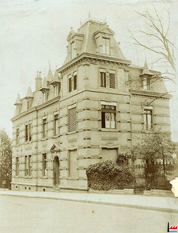![]() VILLA de MUYSER où se trouvent les locaux du Bureau technique et de l’Office de brevets R. de MUYSER, ci-devant Charles DUMONT, office fondé en 1881. Adresse : Luxembourg, Côte d’Eich 22 Situation : près de la Place du Théâtre Téléphone : 37-39 Direction : Alfred de Muyser, fils, ingénieur (Publicité, 18,4 x 13,6 cm. - Collection de Muyser-Huck) |