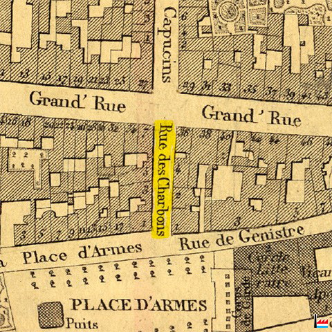 Luxembourg - rue des Charbons (Plan de la Ville et de la Forteresse de Luxembourg, dressé par J.B. Liesch, vérificateur-chef de bureau du Cadastre - 1862)