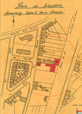 | 4.1898 | Neue Straße. Dieser Tage wurden die Arbeiten der neuen Straße, welche die Neypergstraße mit dem Bahnhofsplatze verbinden soll in Angriff genommen. Da die zuerst projektierte Lage derselben der Ausführung des Baues hinsichtlich des Terrains große Schwierigkeiten in den Weg legte, sind diese nun glücklicherweise beseitigt und die neue Straße erhält ihre Mündung in die Bahnhofstraße zwischen dem nördlichen Flügel des Hotels Lamarle und dem neuerbauten Hause Dondelinger. (LW: 30.4.1898) |