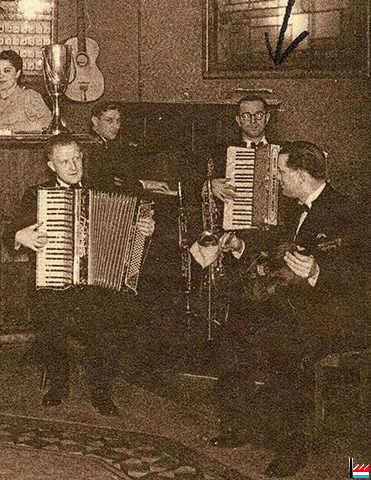 ![]() Clou Bar, Luxembourg-Gare, 3 rue de Beethoven, Prop. Schmitt - Urbing Em., tél: 5771 (Carte postale: collection: industrie.lu) Dancing Cabaret - Bar Américain - Attractions ![]() Pfeil: Lorenz ...(Bauer??) (spielt seit einem Jahr hier) (Collection: industrie.lu) |
