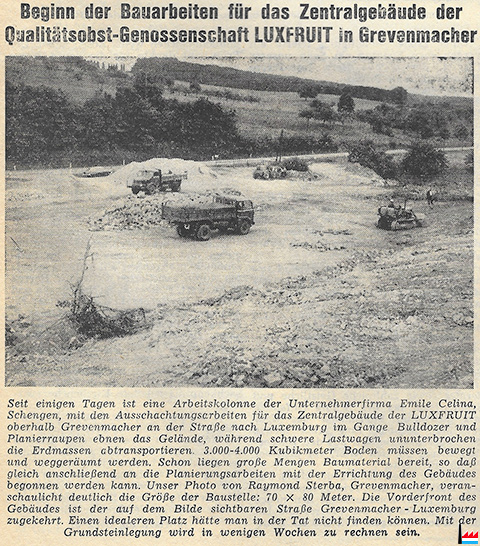 ![]() LUXFRUIT, Grevenmacher, an der Straße nach Luxemburg (LW: 20.7.1963 p.7; Scan: Fernand Toussaint) Entrepreneur Emile Celina, Schengen |