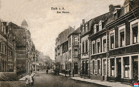 Esch, rue Neuve (rue de la Libération) (Carte postale: Math. Kraus, Luxembourg-Gare; collection: industrie.lu)