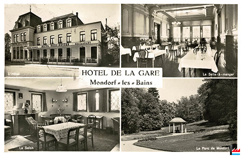 Hôtel de la Gare, Mondorf - Roger Muller-Steinegger, tél: 10 (Carte postale: MPK; Collection: industrie.lu)