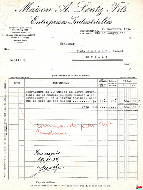 FAILLITE. - Par jugement en date du 15 mai 1937, le Tribunal de commerce, séant à Luxembourg, a déclaré en état de faillite: 1) la Maison de commerce André Lentz fils, entreprise de construction, établie à Luxembourg, représentée par ses propriétaires Marie Hallinger, veuve André Lentz, Michel Lentz, Fernand Lentz, tous entrepreneurs à Luxembourg; 2) les coassociés de la susdite maison de commerce: a) Marie Hallinger, veuve André Lentz; b) Michel Lentz; c) Fernand Lentz, tous entrepreneurs à Luxembourg, rue Albert 1er. (…). (LW : 20.5.1937) |