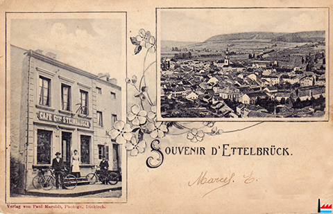Souvenir d'Ettelbrück - Café Georges Steinhäuser, Ettelbruck (Carte postale: Verlag von Paul Maroldt, Photogr., Diekirch; collection:Jérôme Stümper)