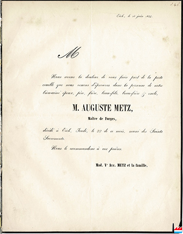 | 22.6.1854 | ![]() Décès d'Auguste Metz, maître de forges (Collection: industrie.lu) |