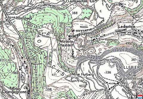 Minière Hainaut = Mine Lederten, Tétange - 1964 © Origine Administration du Cadastre et de la Topographie Luxembourg (ACT) - Extrait de la carte topographique à l'échelle 1: 20.000 édition 1964 - Autorisation de publication du 20.10.2010.»