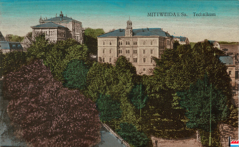 Technikum Mittweida, Sachsen (Carte postale: 8563 Verlag: Mitteldeutscher Kunstverlag F. Heberlein, Meerane i. Sa.; Collection: industrie.lu)