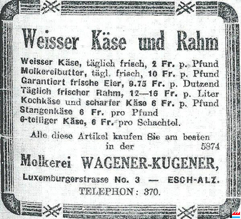 | <=1935 | Laiterie Centrale Wagener - Kugener, 3 rue de Luxembourg, Esch/Alzette, tél: 2488 |