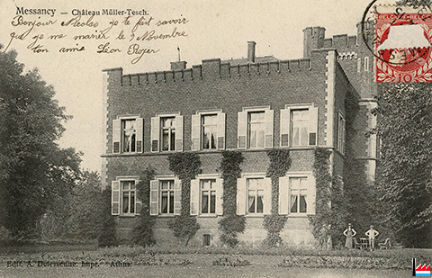 ![]() Château Muller - Tesch, "Le Castel", Messancy, 108 rue Grande - vers 1910 (Carte postale: Edit. A. Delessenne. Impr. Athus; Collection: industrie.lu) |