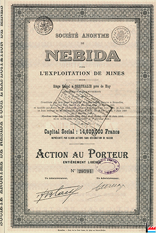 | 17.4.1895 | Fondation Société Anonyme de Nebida pour l'exploitation de mines Siège sociale: Corphalie (Huy) |