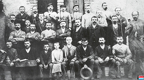 ![]() Le personnel de la clouterie de Bissen - vers 1903 (Source: Bissen seit eh und je - Band 2 - Seite 329) |
