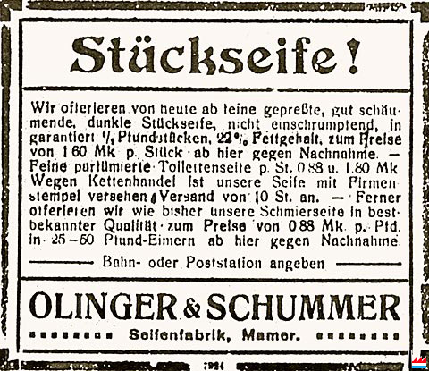 Seifenfabrik Olinger & Schummer, Mamer (LW: 10/11.3.1917)
